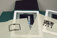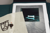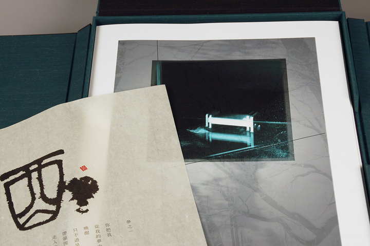 Lo Ch'ing's poems give these images the depth and richness that brings to mind narrative scrolls as well as the Medieval tradition of the devotional book of Hours. The intention here is to place the poems in the context of the images without the image being illustrative or the text being explanatory. Rather than the specificity of the devotional, these parings are open-ended and resist any specific reading. The ambiguity of the connections allow for conjecture as to how the image and text meet. As art is the embodiment of meaning in form, my hope is that the placement of the objects, the tone of the text, the proscenium opening in the page and the color tonalities reflect the contemplative character of our dreams.