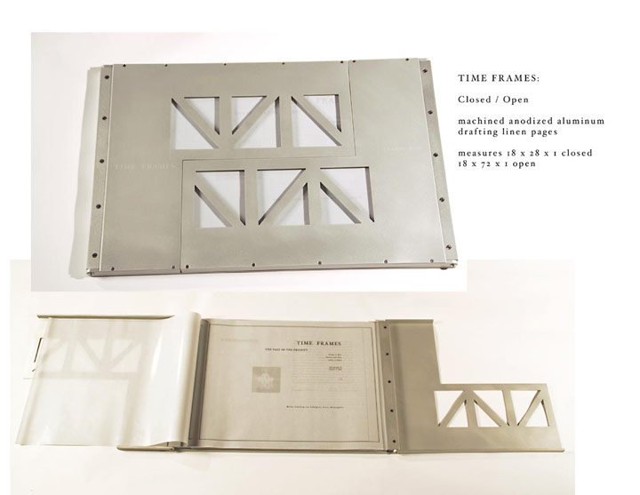 Time Frames is a limited edition, hand made book capturing the phenomenological experience of architectural space distilled into images. Arthur C. Danto writes the Introduction, "The Past in the Present". The project has its origin in my grandfather's memoir, written in 1932-33 and has been edited by me to the sections describing his apprenticeship with the architect J.J. Egan and his evolution as a practicing architect.